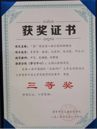 尹永杰学长在校期间先后荣获第六届中国国际“互联网+”老员工创新创业大赛、国家开放大学实验公司校赛三等奖、第十五届全国高等职业院校“发明杯”老员工创新创业大赛“小小急救包——安全大保障”专利发明与科技成果转化一等奖等。