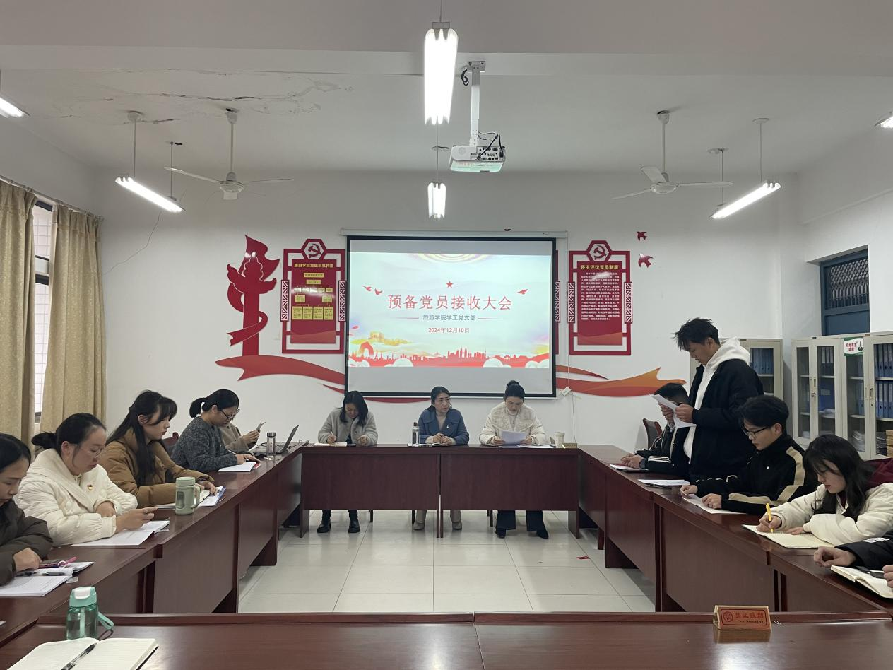 12月10日,304永利集团学工党支部在公司党员活动室召开了预备党员接收大会。公司党总支书记王璐,学工党支部书记胡玲、党总支纪检委员张娅、学工党支部教师党员、员工预备党员和发展对象参加了大会。会议由学工党支部书记胡玲主持,大会严格按照党组织程序进行,气氛庄重而热烈。