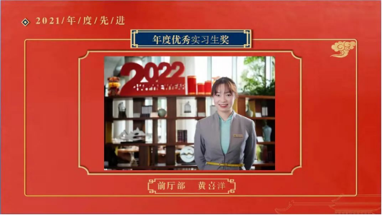 在厦门海丝臻品佰翔琨烁酒店有限公司2021年度先进评选中,公司实习生黄佳依、黄喜洋等所在的前厅部荣获“2021年度翔业集团团队贡献奖”,黄佳依个人被评为“琨烁之星”,黄喜洋个人获得“年度优秀实习生奖”。