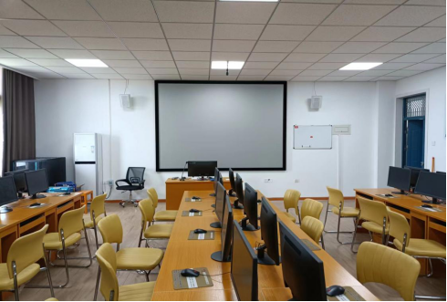 模拟导游实训室,配备3D-LED 显示屏、3D 视频控制系统、数字化体验式教学系统成品、投影仪等。实训内容涵盖导游业务及景区景点讲解及展示等。
