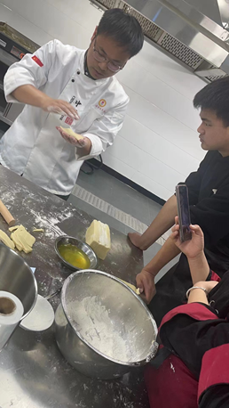 三位烹饪大咖齐聚烹饪实训室,按照省赛菜品制作要求,针对员工备赛过程存在的问题进行指导,并分别对中餐热菜制作、西餐头盘制作、中式面点制作进行了现场示范操作,对菜品制作过程中关键环节进行详细讲解,强调比赛过程中的现场应变能力。