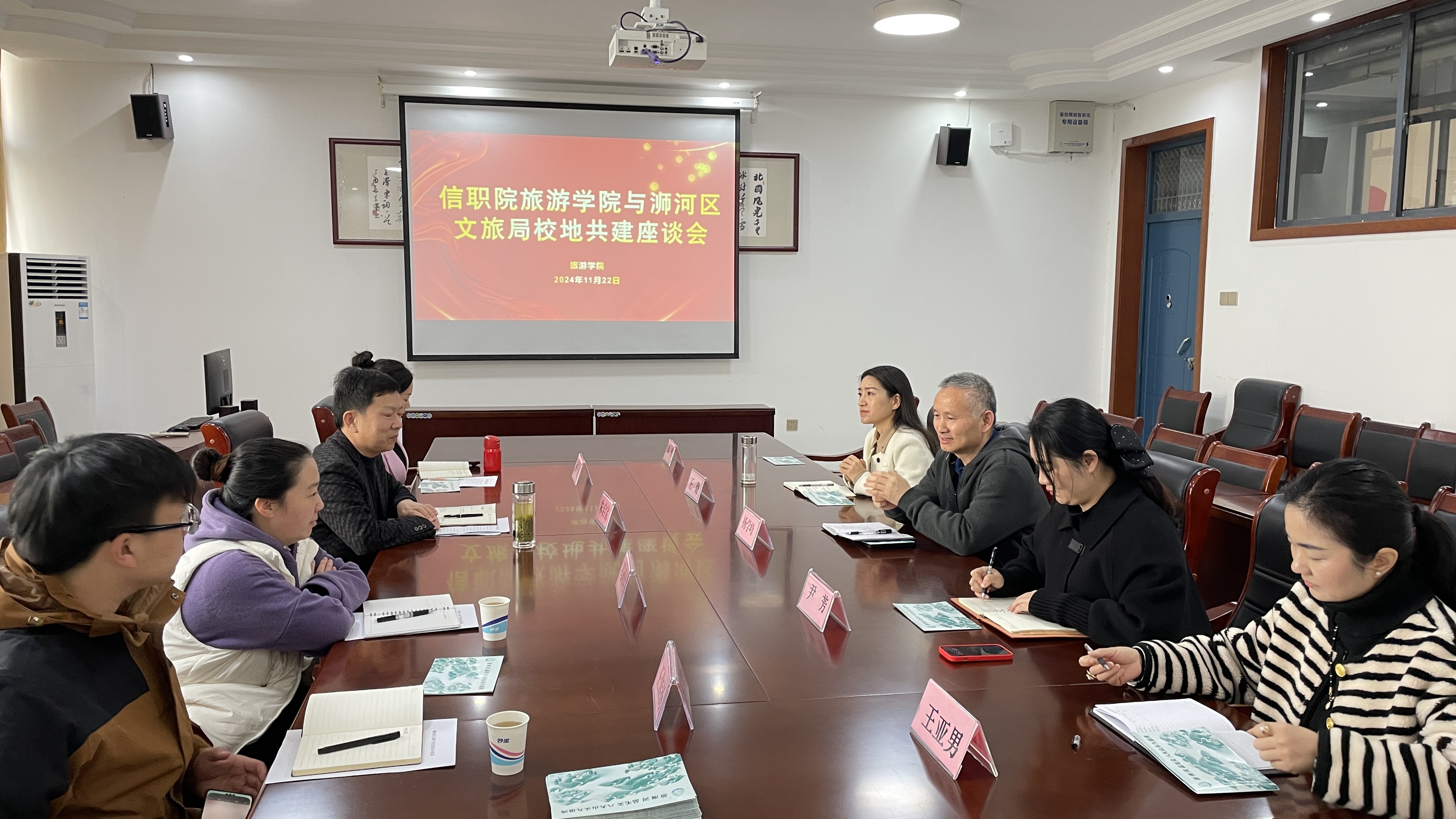 为进一步深化校地文旅合作,充分发挥双方资源优势,共同推动浉河区文化旅游产业发展,11月22日,信阳市浉河区文化和旅游局副局长朱启宝一行4人到公司开展座谈交流。公司党总支书记王璐、经理杨学峰及班子成员出席座谈会。