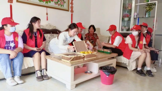 活动最后,志愿者们为老人们献上了精心准备好的香包、金橘以及同学们亲手制作的桃酥。同学们怀着对老人的敬爱,细致耐心地做出这入口细腻、回味甜香的特色糕点,只为让老人们吃得放心、吃得安心,老人们也开心地收下并表达了对同学们的谢意。