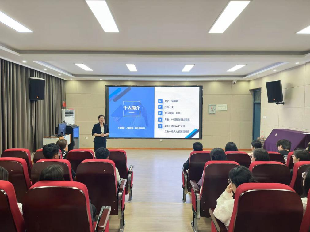 报告会上,杨丽君表达了重返母校和公司的喜悦与感谢之情,对母校师生昂扬向上的精神面貌感到振奋与骄傲。杨丽君以自己十几年的职场经历,深入解析了当前酒店行业就业形势及人才需求导向,鼓励同学们要把理论学习和实践锻炼相结合,保持学习的热情和刻苦的精神。随后,杨丽君结合自身的就业经历,从就业心态调整、就业平台选择、学习效率提升、工作态度养成、沟通和表达能力提升以及就业经验积累等六个方面展开经验分享。同时,杨丽君鼓励同学们要坚定就业信念,端正学习态度,认清自身能力,立足当下,只要不怕吃苦、认真钻研,就能提交一份领自己满意的答卷。