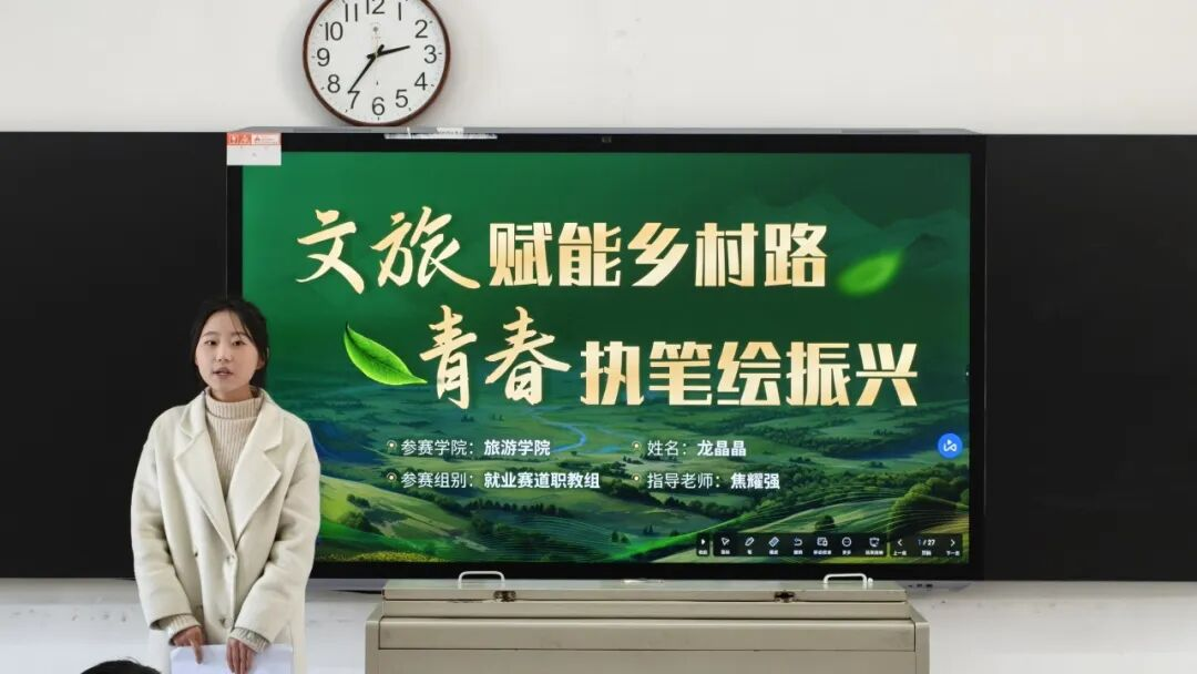 大赛设置就业、成长两大赛道,选手们立足专业特色,规划方案兼具专业性与创新性。就业赛道中,24旅游管理2班龙晶晶聚焦文旅赋能乡村振兴,彰显旅游学子的责任担当;24旅游管理1班杜庭昱依托家乡洛阳红色资源,立志成为乡村研学旅行指导师;24茶艺与茶文化班柳小雨则结合信阳茶产业优势,探索茶旅融合新路径。成长赛道上,25烹饪2班万旭锚定“康养菜品研发”方向,以烹饪工艺与营养专业积淀诠释职业追求;邱雅馨、陈方俊等其他几位25级同学也结合自身专业,确立了切实可行的职业目标,展现出扎实的职业探索能力。