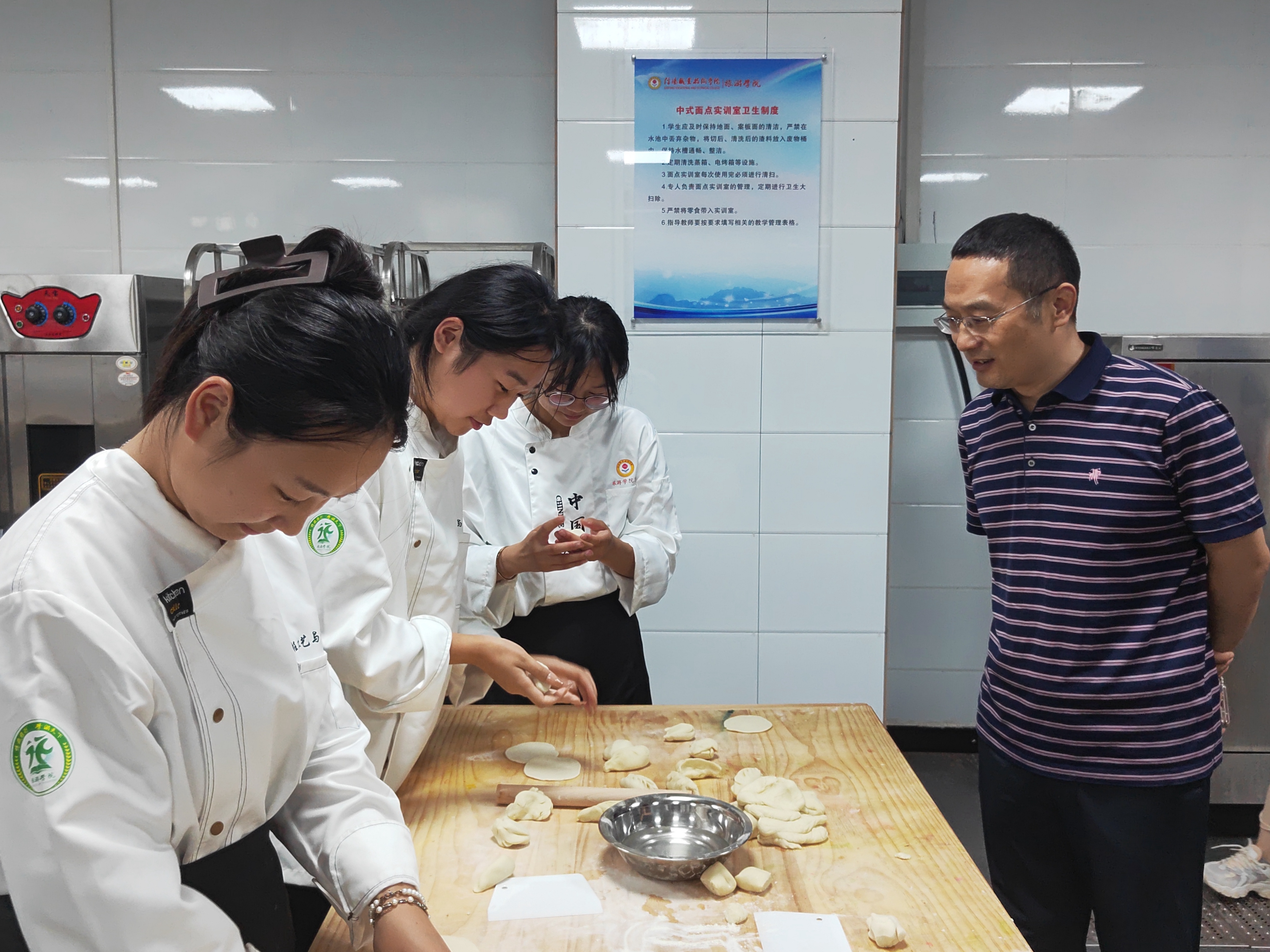 李森实地查看了304永利集团模拟导游实训室、酒店综合实训室、旅行社仿真实训室、形体训练室、茶艺实训室、烹饪综合实训室,与师生亲切交流,逐一了解实训室建设、实践教学情况。