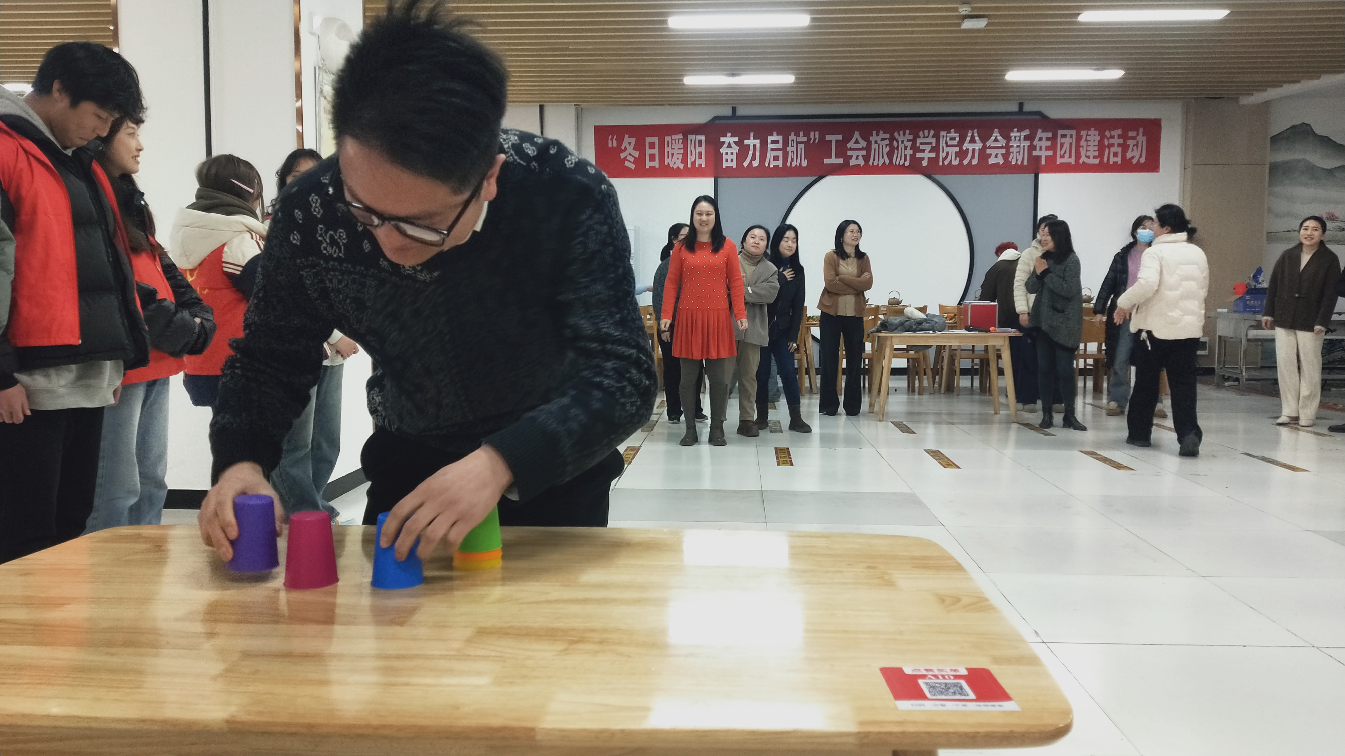 本次团建活动主要包括围炉煮茶和趣味游戏两大环节。趣味游戏率先开展,在场老师们通过抽签被分为 A、B 两组,大家积极参与,热情高涨,现场气氛热烈。