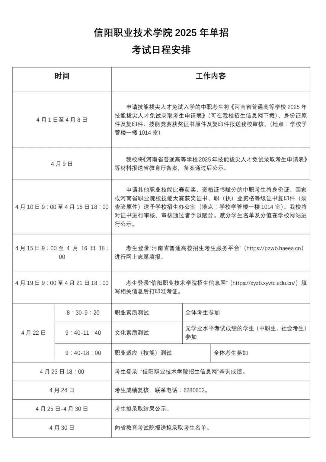 304永利集团公司2025年单招考试日程安排