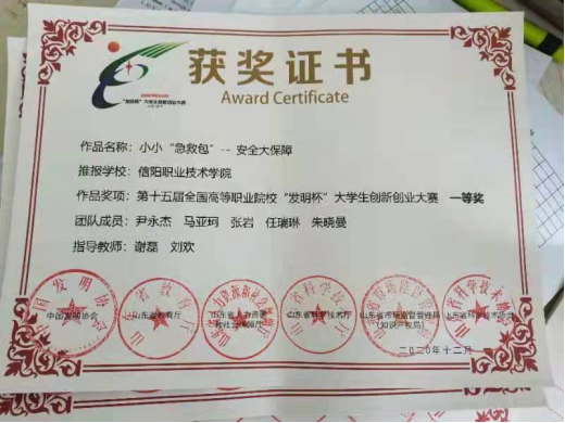 届全国高等职业院校发明杯老员工创新创业大赛中荣获一等奖