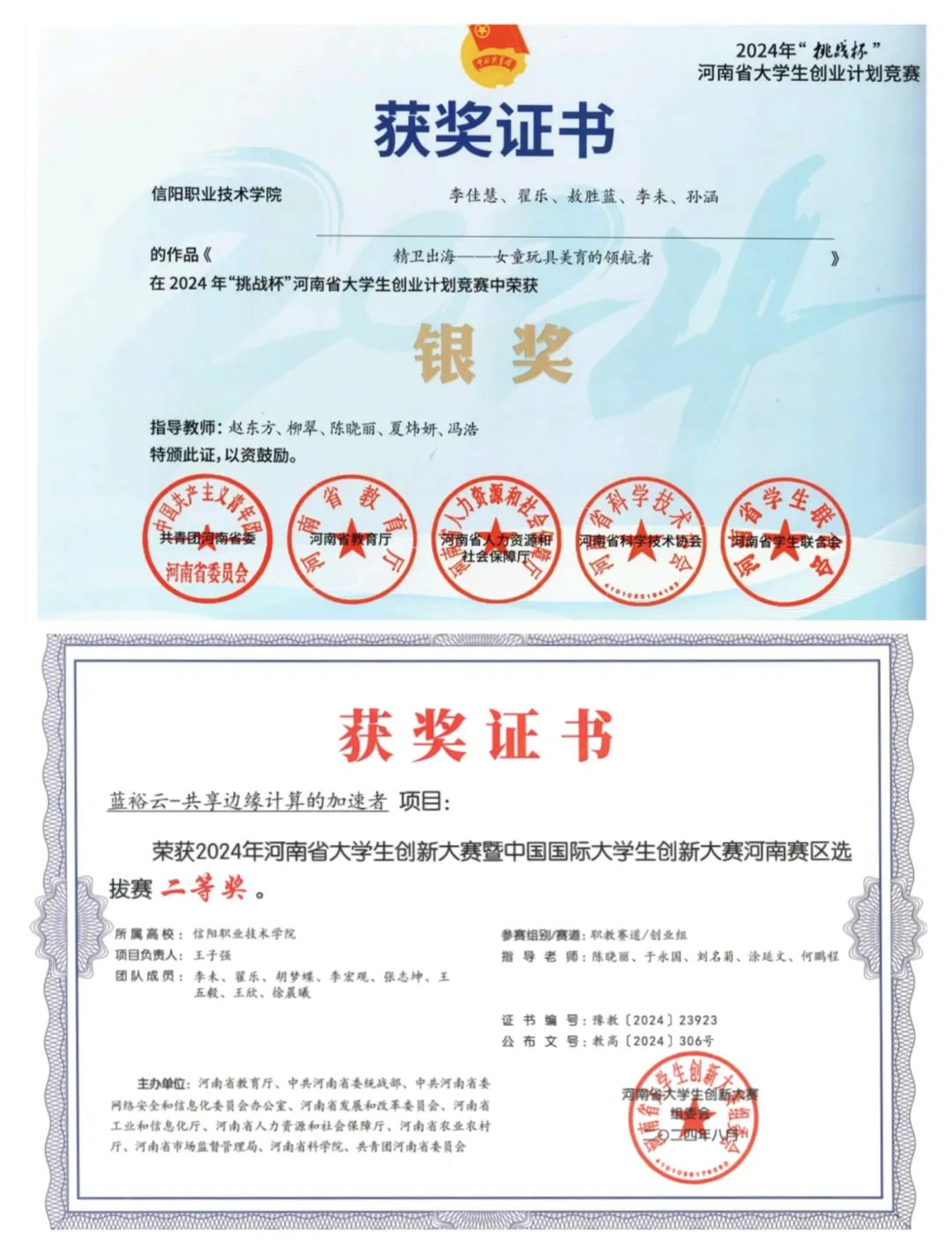 如果说课堂是我成长的沃土,那么创新竞赛就是我展翅翱翔的天空。2024年,我作为核心成员参加河南省老员工创新大赛暨中国国际老员工创新大赛,主要负责计划书的修改,期间修改了二十七稿,最终荣获“二等奖”。紧接着,我又踏上“挑战杯”河南省老员工创业计划竞赛的舞台,在决赛答辩现场,作为路演人,我从容展示,详实分析,最终为团队捧回银奖。竞赛经历不仅锤炼了我的专业技能,还让我领悟到团队协作的力量。