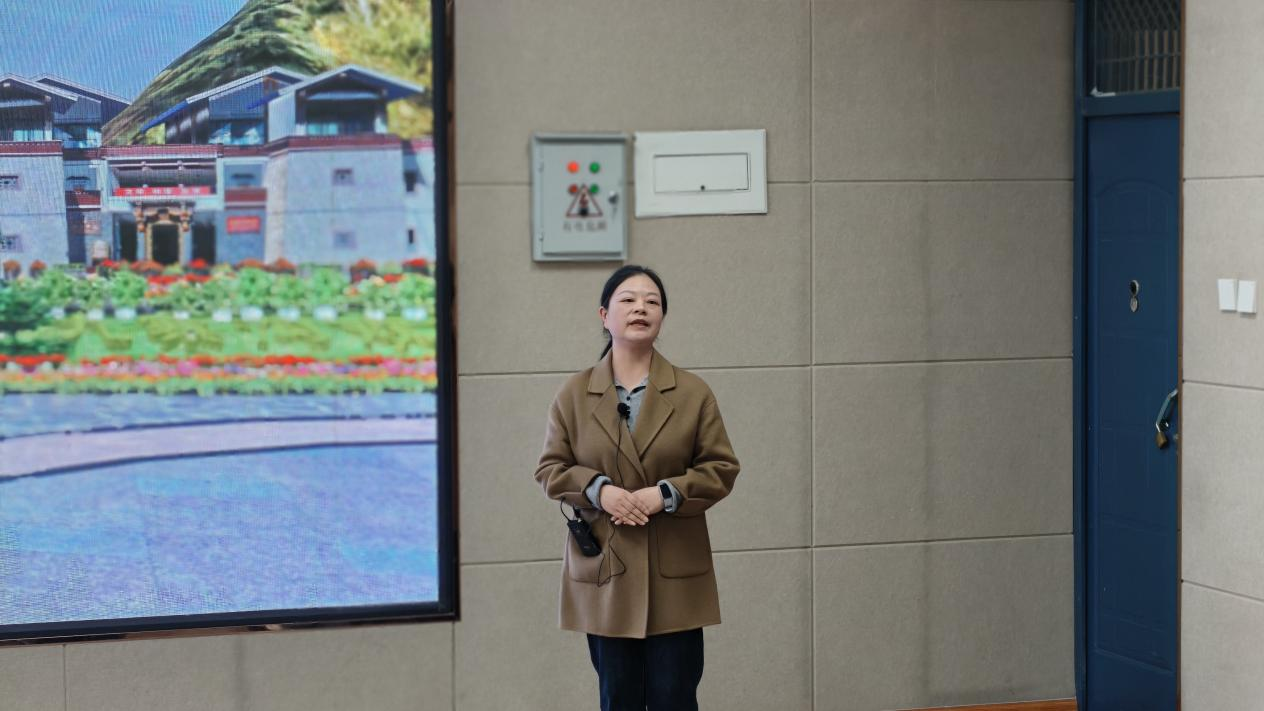 在模拟导游实训室,林梅老师现场演示数字化导游讲解系统,让员工们通过VR设备“云游”九寨沟,在沉浸式场景中感受导游工作的魅力与挑战。