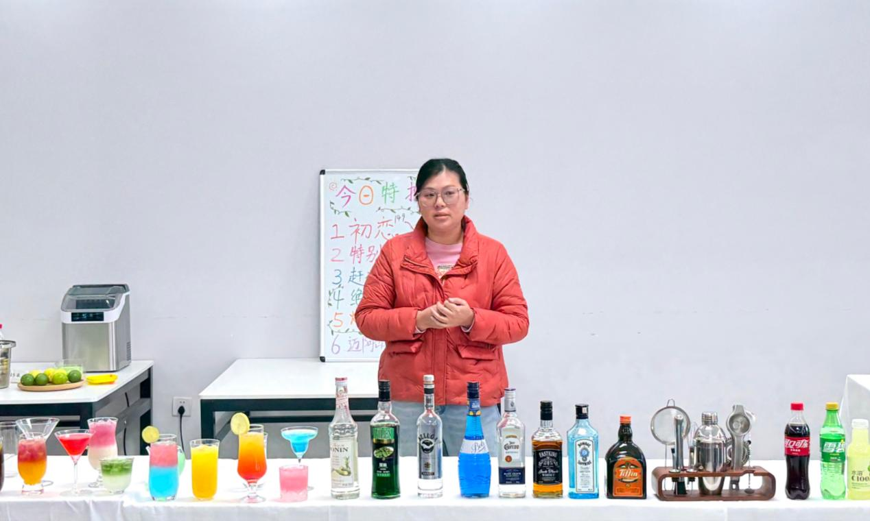 在酒店实训室,酒店教研室主任刘孝娟现场演示鸡尾酒调制技艺,从摇壶手法到分层创意,将服务美学与地方文化巧妙融合。员工亲身体验调酒流程,在杯中艺术里感知酒店管理的专业魅力。
