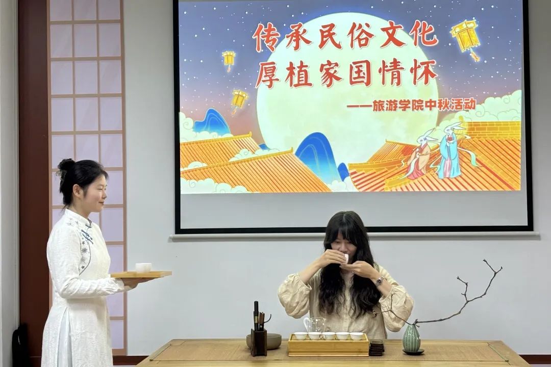 同学们在此品饮清茶,分享与中秋有关的故事,还进行了投壶和猜灯谜等趣味游戏,深刻感受中秋文化的魅力与温度。
