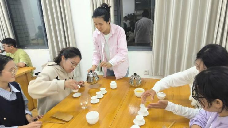 听完讲解后,同学们在社团指导老师赵佳敏与副部长郜静静指导下亲手进行茶艺体验。泡一杯属于自己的茶,感受茶叶的魅力。轻抿一口茶,茶汤在口中散开,初时微涩,但瞬间化为醇厚的滋味,让人回味无穷。压力悄然散去,只留心灵一片澄澈安宁。