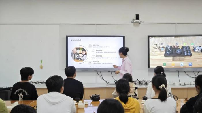 赵佳敏老师与同学们深入探讨了茶文化在心理调适中的重要作用。在她的引导下,同学们了解到中国茶文化历史悠久,包含的内容丰富广泛,具有深刻的文化底蕴和人文内涵,具备一定的教化、德育功能,其在员工心理健康教育中有着不可替代的重大作用。