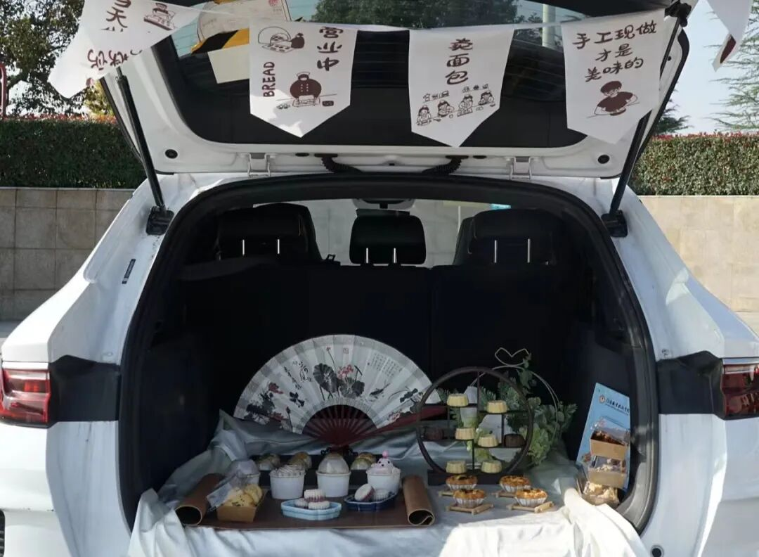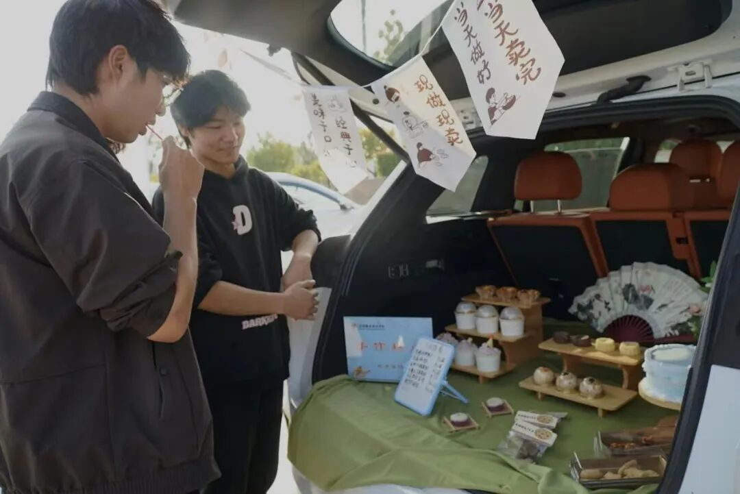活动现场,展出汽车的后备箱内,旅游学子创业团队手作的各色茶点与甜品一一陈列,为车载旅途打造了一个“闲适惬意”的能量驿站,吸引众多师生驻足品鉴。公司领导亲临现场,鼓励师生们持续以新技能、新举措赋能文旅新发展。