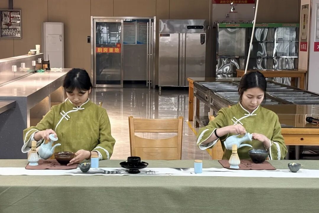 304永利集团学子带来专业宋代点茶展示,茶盏中洁白沫饽再现宋代茶道雅趣,随后老师们受邀亲身体验击拂技艺,在古今碰撞中感受古人匠心,让传统茶文化底蕴在实践中得以传承。