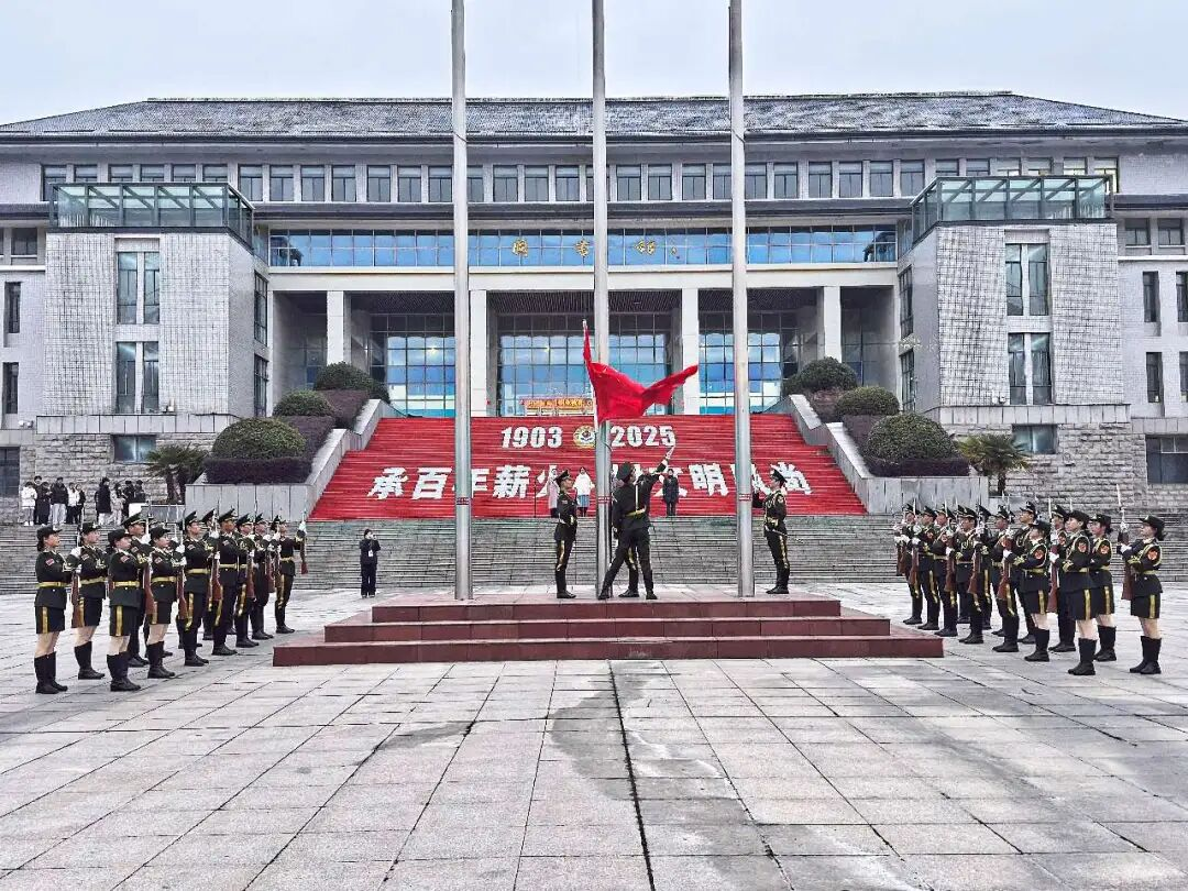 晨光初现,寒意微凛。英姿飒爽的国旗护卫队迈着铿锵坚定的步伐,护卫着五星红旗行进至广场中央。在庄严雄壮的《义勇军进行曲》中,升旗手振臂扬旗,鲜艳的国旗迎着朝阳冉冉升起。全体师生肃立行注目礼,现场氛围庄重而肃穆。